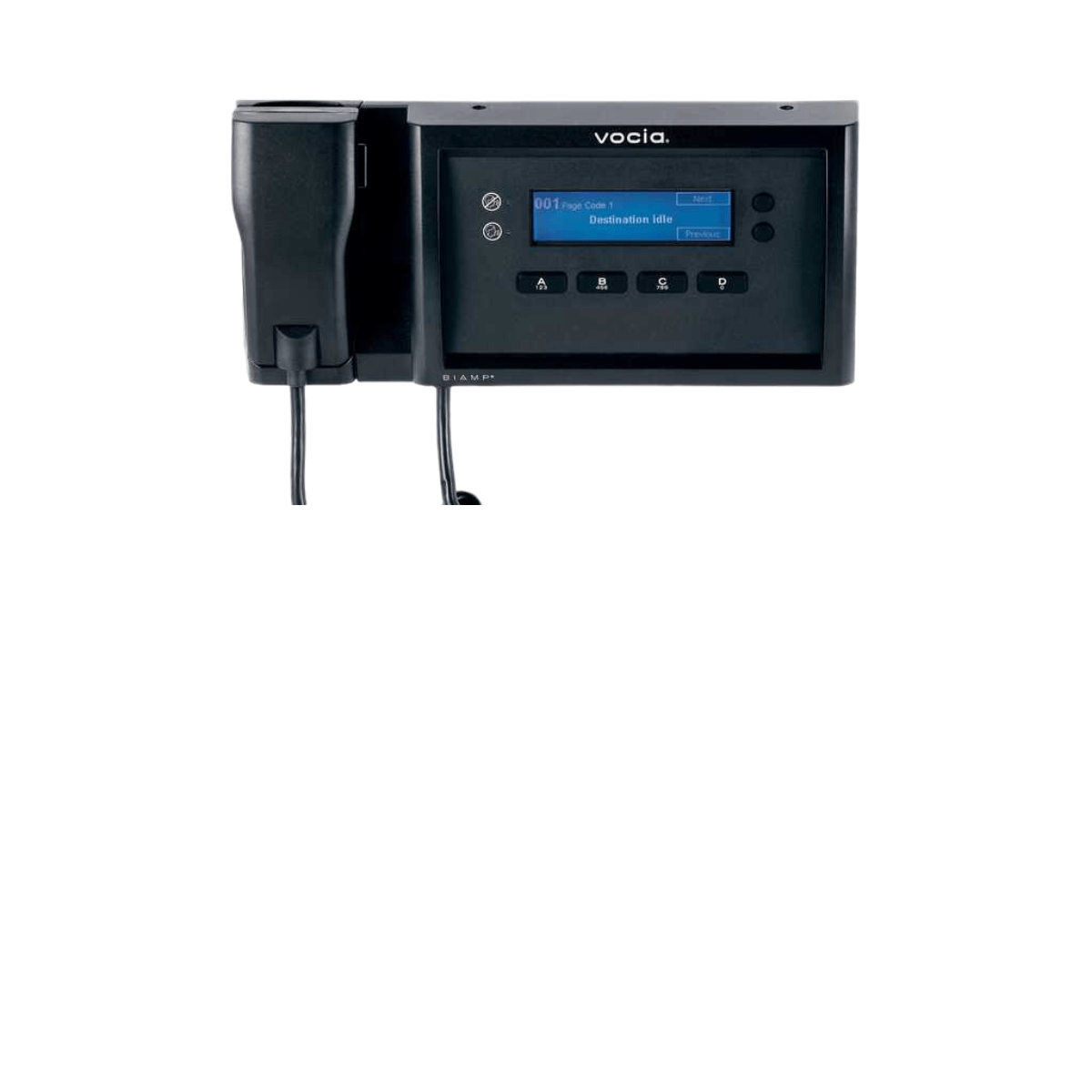 The Vocia WS-4 is a wall-mounted networked paging station that supports both standard and advanced public address functionality. Featuring embedded DSP, PoE, and on-board memory, all device-specific configuration information is stored locally, which means the WS-4 does not rely on a centralized controller for processing and page routing.