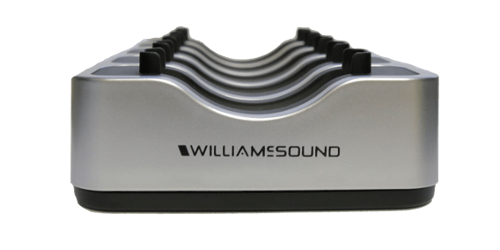 This multi-unit, drop-in style charger pack will conveniently charge and store up to 15 Williams AV IR RX20 under-the-chin style infrared receivers. This 6-hour smart charger helps keep your products organized and batteries consistently charged*.