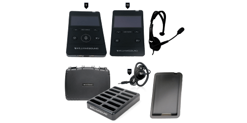 The frequency-hopping algorithm of the Digi-Wave system ensures secure, seamless communication without any interference. This tour guide system comes with a durable carrying case for convenient transport, 12-bay charger, a headset for the guide, and earphones for guests.