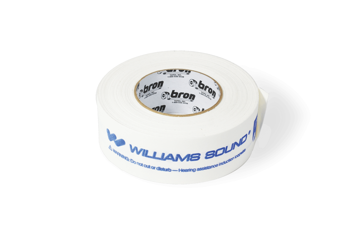 The Williams Sound FWT 001 secures your flat induction wire to the ground securely, if you need to remove it comes up without leaving a sticky mouse. Each roll is 180' long and 2" wide, the blue lettering makes it visible to people to not cut.