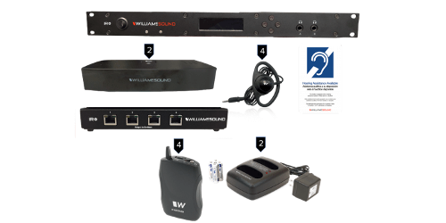Commercial-grade, large-area Dante infrared system with IR+ transmitter, 2 emitters and array.
