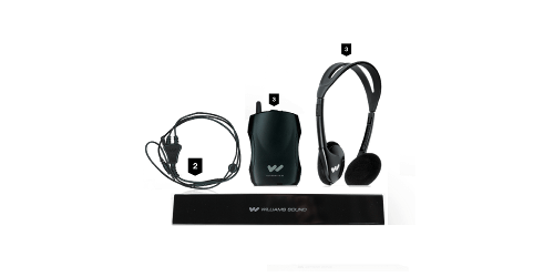 The IR T2 is a commercial-grade, medium-area infrared transmitter for accessible audio. This system features receivers and headphones for the audience to use.