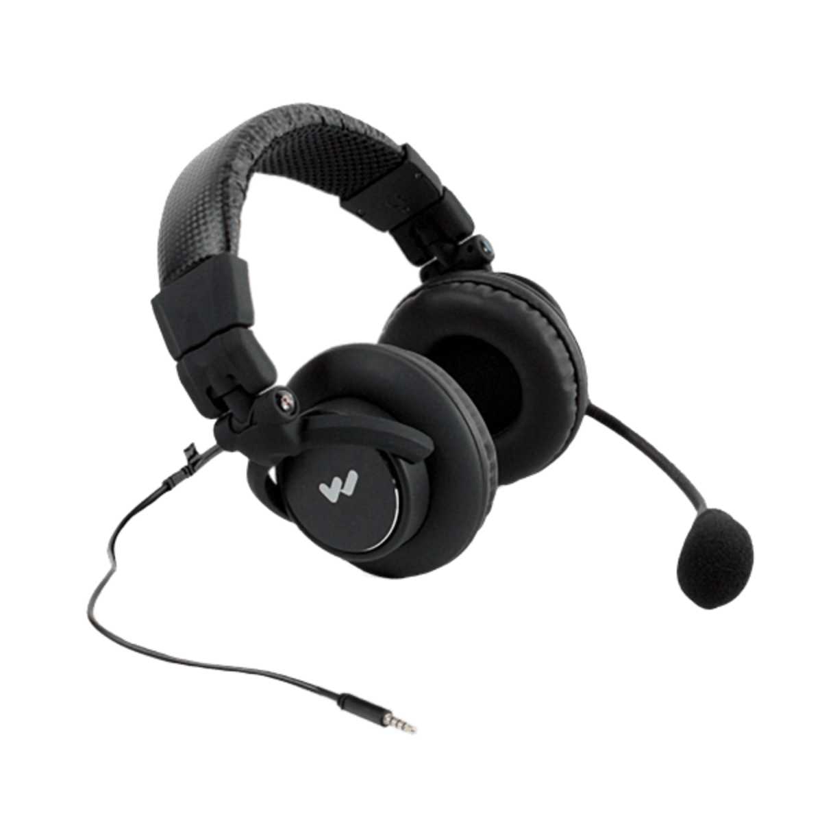 Dual-muff headset microphone with TRRS 3.5mm plug. For use with Digi-Wave DLT 400 transceiver only.