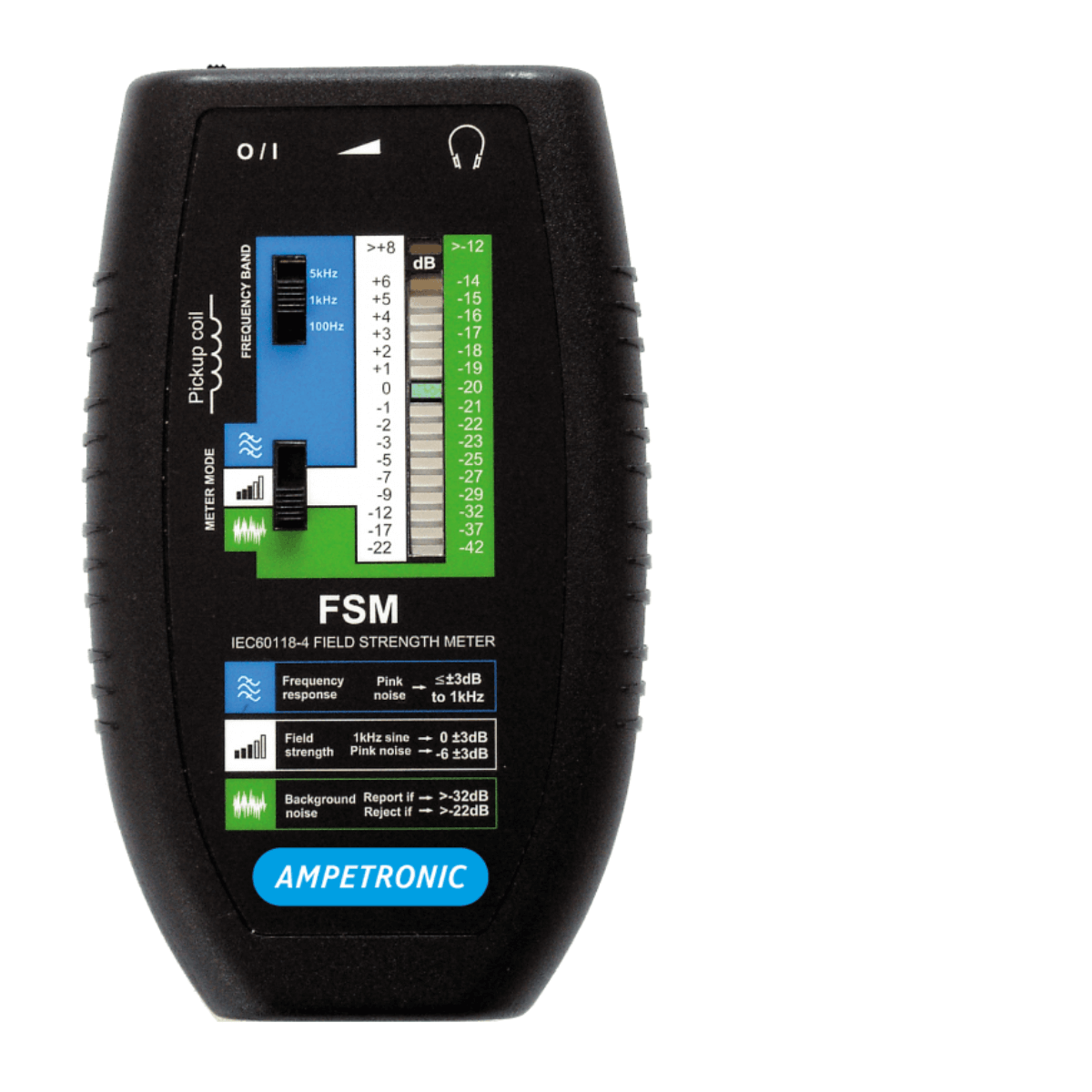 The FSM is a cost effective and simple solution for measuring, setting up and commissioning an induction loop system to the requirements of IEC60118-4. The meter is an ergonomically designed hand held instrument for measuring loop system performance. There are three calibrated operational modes for the assessment of Background Noise, Field Strength and Frequency Response as required to ensure correct function of the loop system. The meter also doubles as a loop listener, with a headphone output to listen to the signal in the loop. The meter is supplied in a soft case and full operating instructions including a guide to commissioning.