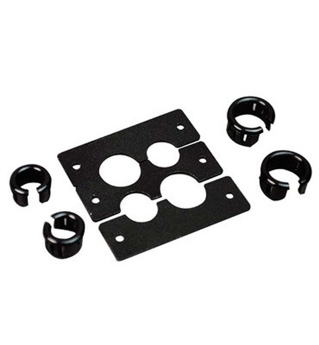 The Wiremold AV9012BK by Legrand is a 4 grommet hole plate designed to fit in all Wiremold devices that accept AVIP plates, the kit takes up 3 out of the 5 spaces in the TB672. The 4 grommet hole plate is typically used when you want to have holes for retractable cables and also space for 2 fixed plates. To install simply use the included screws and screw down in your device, the screwed down connection ensures that you never have to worry about a connection coming loose or being pulled down. The AVIP series of connectivity plates future-proof all your installation, simply change them out as your needs change.