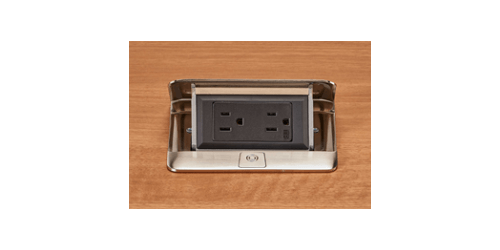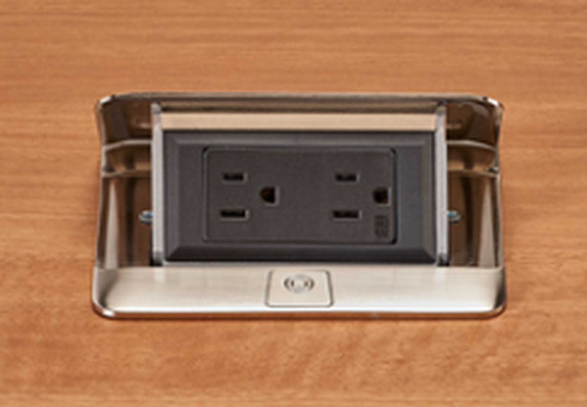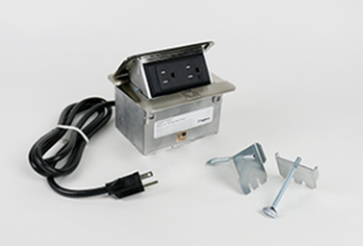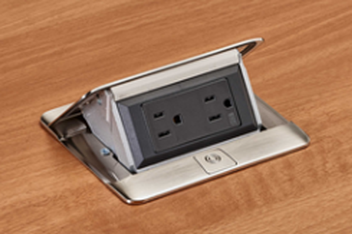 Wiremold's DQFP15ST is a steel-colored flip-up outlet. The outlet is designed to be mounted to be flush with the table top. This model features a 15A, tamper-receptacle with 2 outlets, and it is fitted with a 6-foot cord. This flip-up outlet is slim and low-profile, ensuring a seamless fit with your surface. Its sleek design makes it a great choice for conference and meeting rooms, as well as hotel rooms, kitchen, and office spaces.