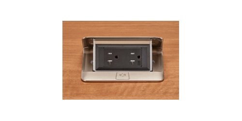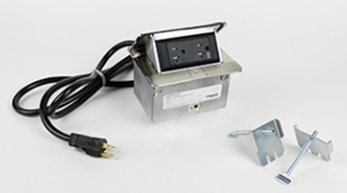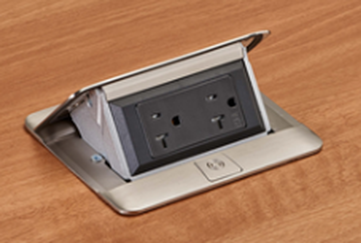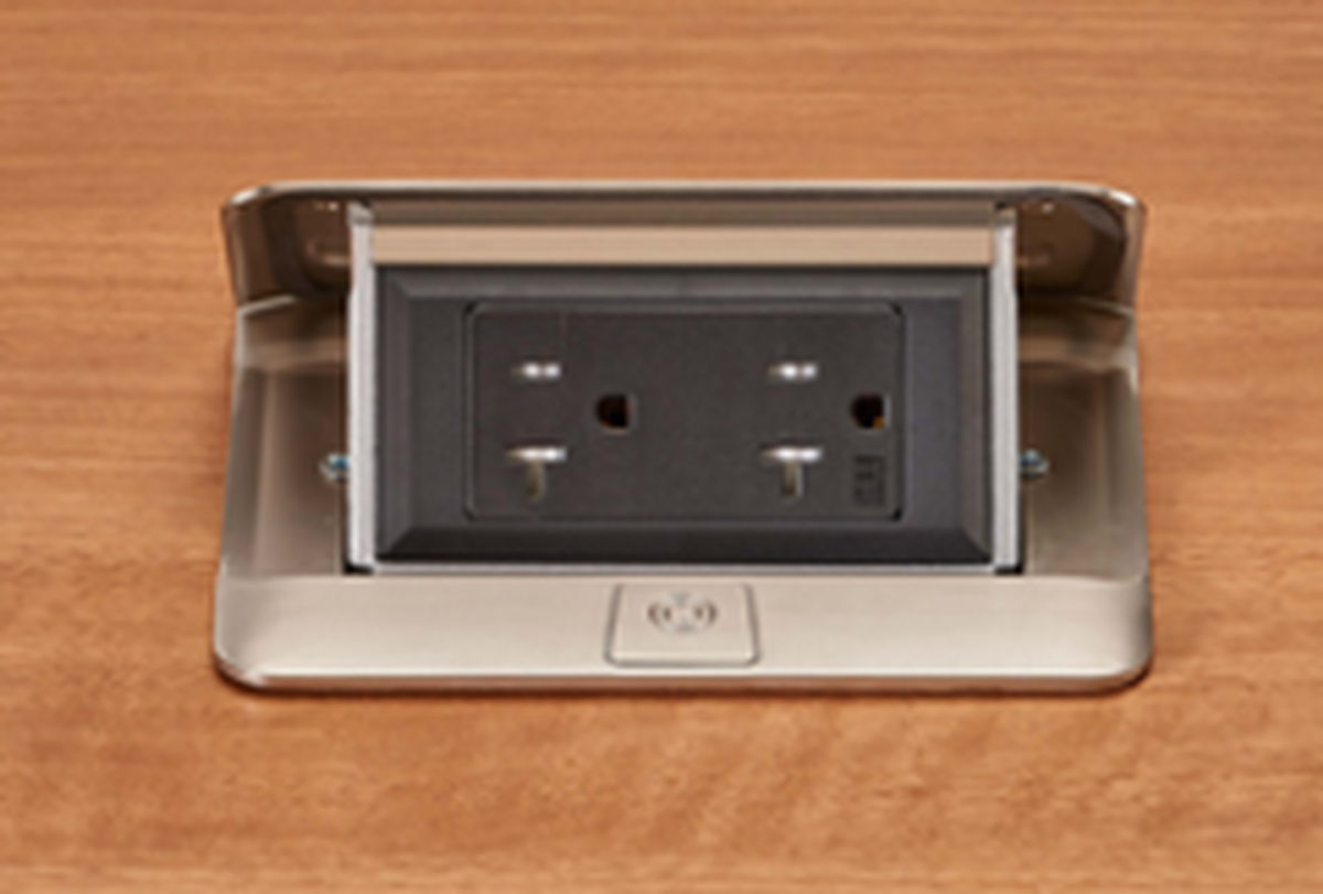 Wiremold's DQFP20ST is a steel-colored flip-up outlet. The outlet is designed to be mounted to be flush with the table top. This model features a 20A, tamper-receptacle with 2 outlets, and it is fitted with a 6-foot cord. This flip-up outlet is slim and low-profile, ensuring a seamless fit with your surface. Its sleek design makes it a great choice for conference and meeting rooms, as well as hotel rooms, kitchen, and office spaces.