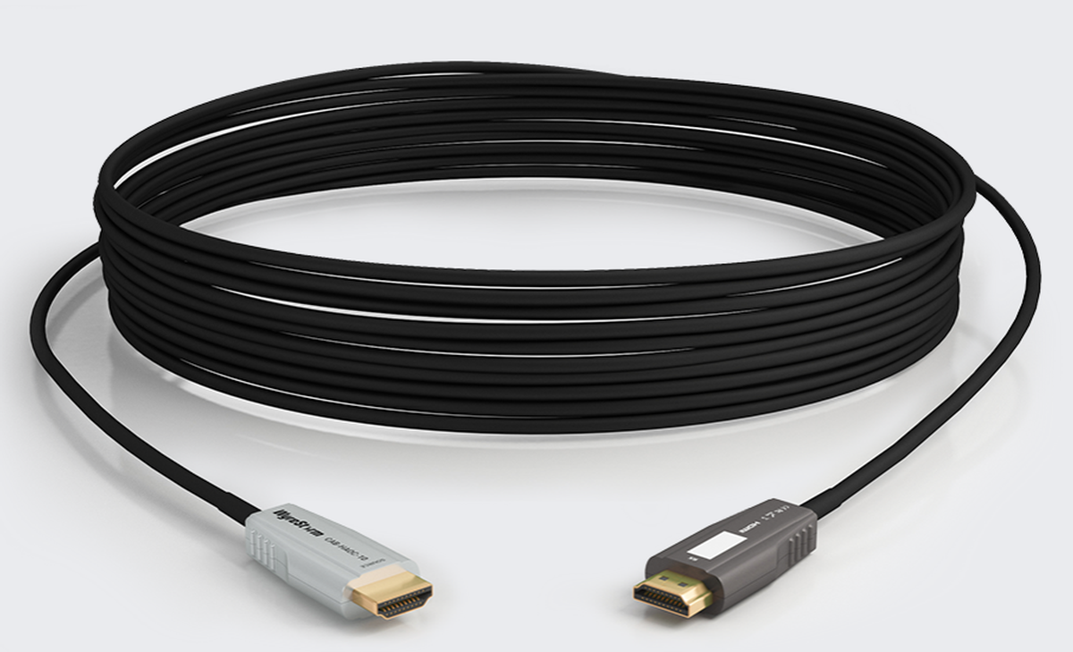 This is Wyrestorm's next-generation active optical HDMI cable. The CAB-HAOC-20 is designed for 4K UHD with HDR content. This hearty cable delivers uncompressed full bandwidth 18Gbps HDMI content across 65 feet using the latest optical transmission technology. The head and tail of the cable are made of solid alloy and designed to perfectly fit through conduits.