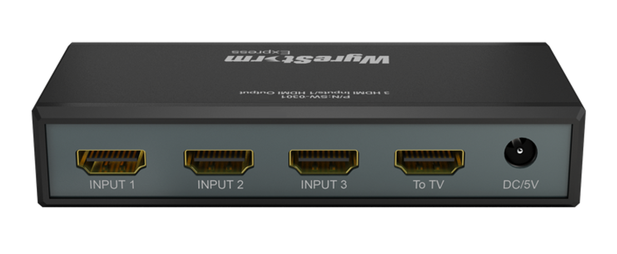 The WyreStorm EXP-SW-0301 is a 3x1 HDMI switcher that allows you to take 3 HDMI inputs and output a single HDMI connection. You can then switch between the 3 inputs using the front control panel buttons or the included IR remote control. The switcher can handle resolutions up to 1080p/24Hz including full 3D, as well as your embedded HD audio. The switcher will automatically negotiate the EDID signals from your display for seamless communication between devices.