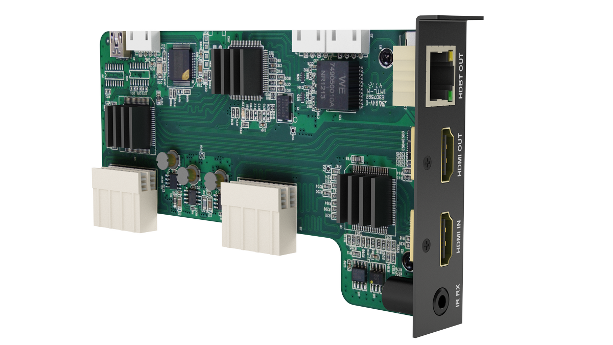 - Sends: Video, HD audio, 2-way IR and RS-232, and power to receivers