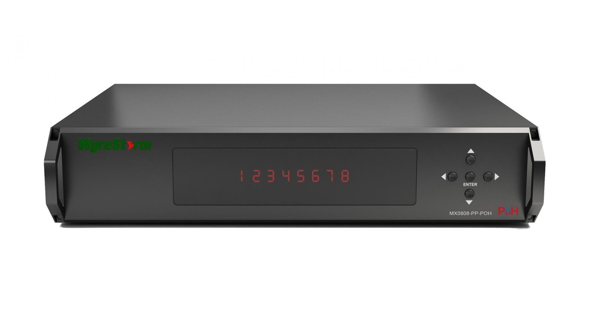 The WyreStorm MX-0808-PP-POH is an 8x8 1080P matrix switcher, it features 8 HDMI inputs and your choice of 8 HDBaseT or HDMI outputs. You can not only send video but embedded HD audio, 2-way IR and RS-232 for complete solution. Power is also sent to compatible receivers, up to 230' for a 1080P signal using Cat6a/7 cabling. The matrix supports enhanced EDID management, 3D pass through, and is HDCP compliant. The matrix switcher can be controlled via the front panel, IR (includes remote control), RS-232, and LAN via Telnet or Web GUI.