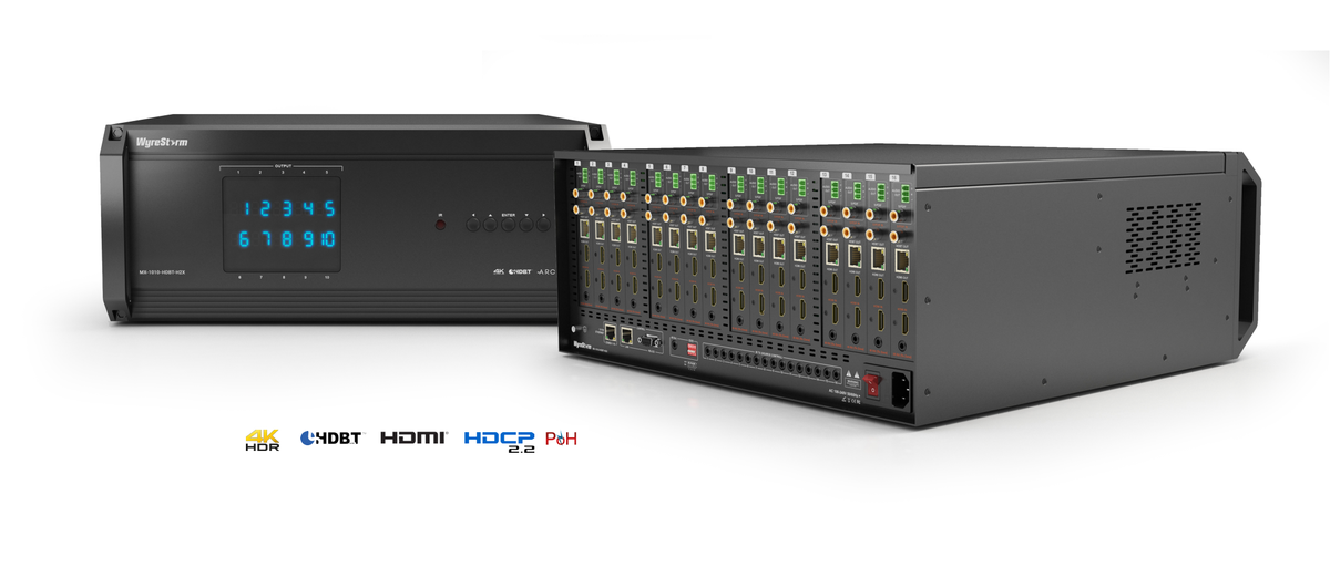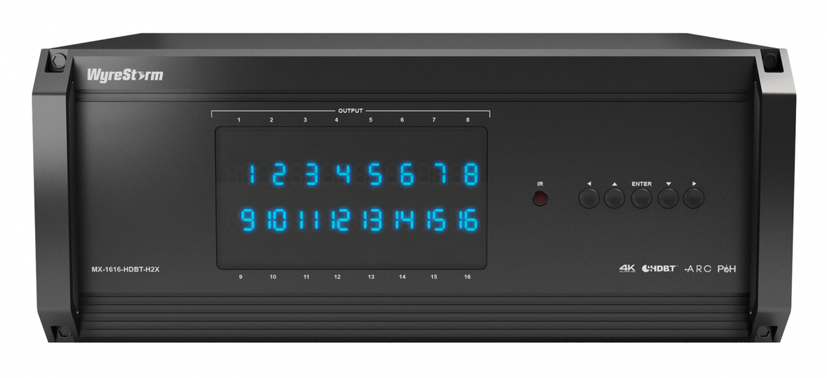 Featuring the MX-1616-HDBT-H2X 16x16 4K Matrix Switcher from WyreStorm