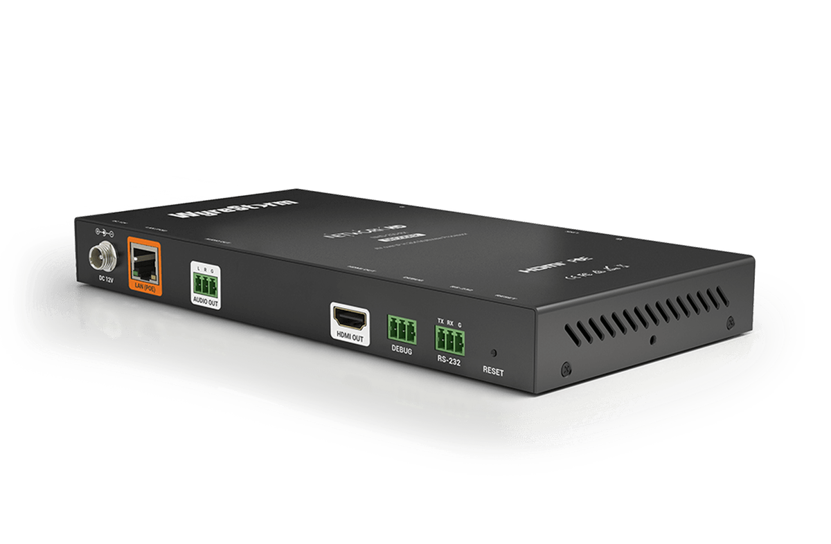 The Wyrestorm NHD-250-RX is an enhanced MultiView display decoder compatible with the NetworkHD 100 and 200 Series, an ultra low bandwidth H.264 AV over IP solution for distribution of point-to-point, one-to-many and many-to-many over a managed network.