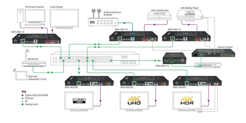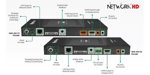Furthermore, mixing the latest 4K displays and older 1080p screens around the home, campus, bar or company building will never be a problem. The powerful scaling features of the NetworkHD 400 Series enables NHD-400-RX decoders to automatically scale incoming video signals to match the maximum capability of the connected display device. The NetworkHD 400 series is a control powerhouse, with bidirectional IR and RS-232, for control of displays and sources from remote locations and CEC support for triggering displays on and off can be accomplished with the tap of a button
