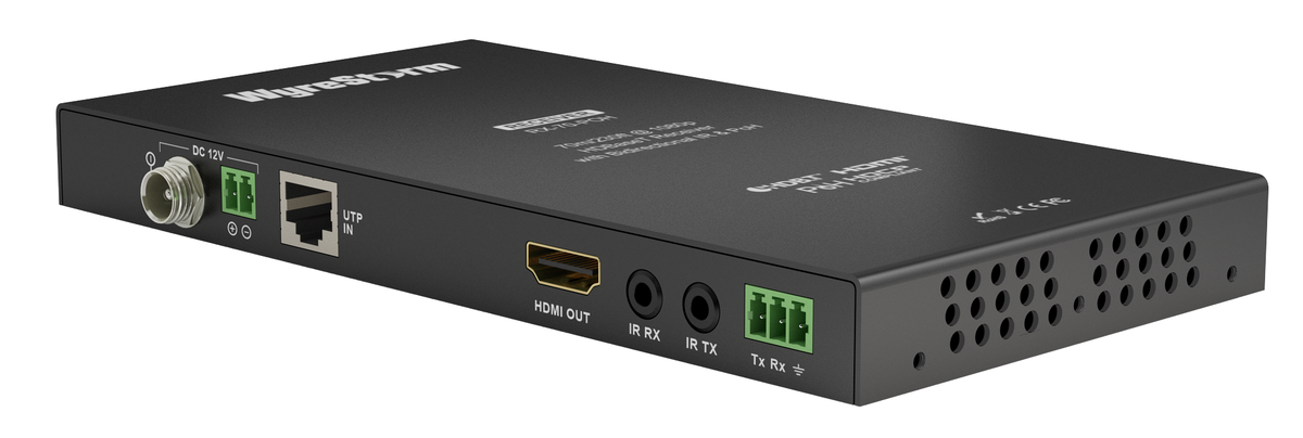 The WyreStorm RX-70-POH is an HDBaseT Lite receiver that outputs HDMI. It will receive video, HD audio, bi-directional IR, power, and RS-232 control. It can receive up to 1080P resolutions from up to 230' away. The unit is very thin with a height of just under 1" making it easy to fit behind a TV or any tight location. The front has LED status indicators and includes mounting brackets for an easy installation and set up.