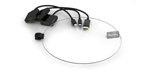 The WyreRing provides a simple yet effective way to ensure compatibility of BYOD in a meeting space without the need for a presentation switcher or over-specified system. The simple adapter ring provides 3 HDMI converters: USB-C, DisplayPort and Mini DisplayPort. All 3 converters support up to 4K60 video passthrough. The secure cable lock attaches to any HDMI cable up to 10mm in diameter. The metal reinforced ring provides a strong and durable connection to the converters that won’t wear out after repeated use.